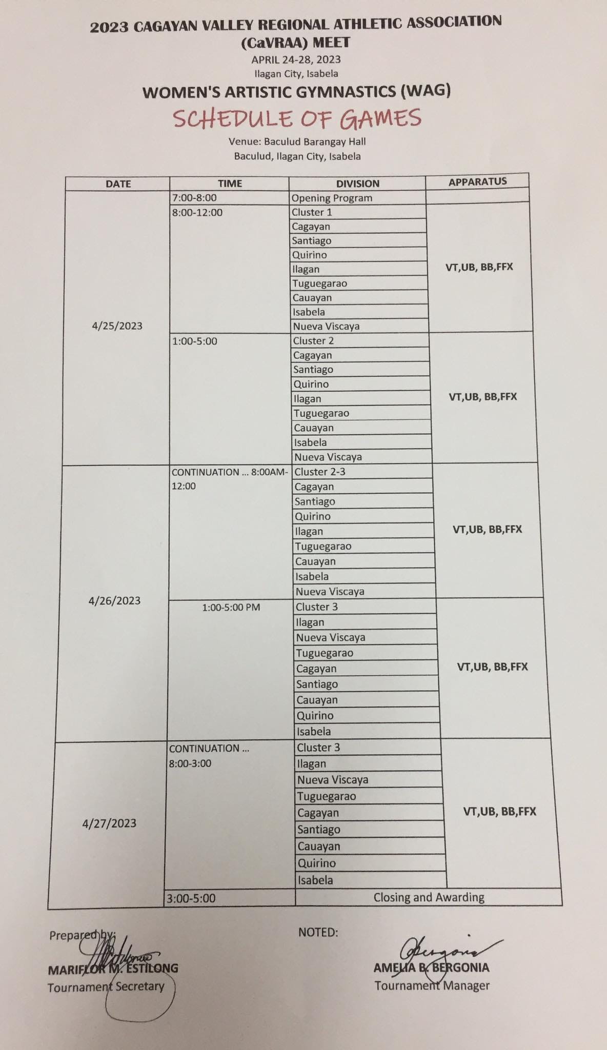SCHEDULE OF GAMES